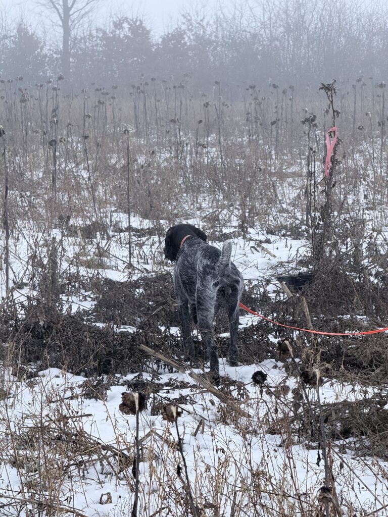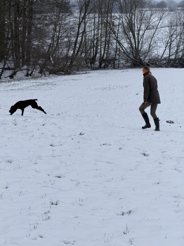 Nun werden Erfahrungen gesammelt und unsere Aue darf mit Dabbi zusammen auf Drück und Niederwildjagden..